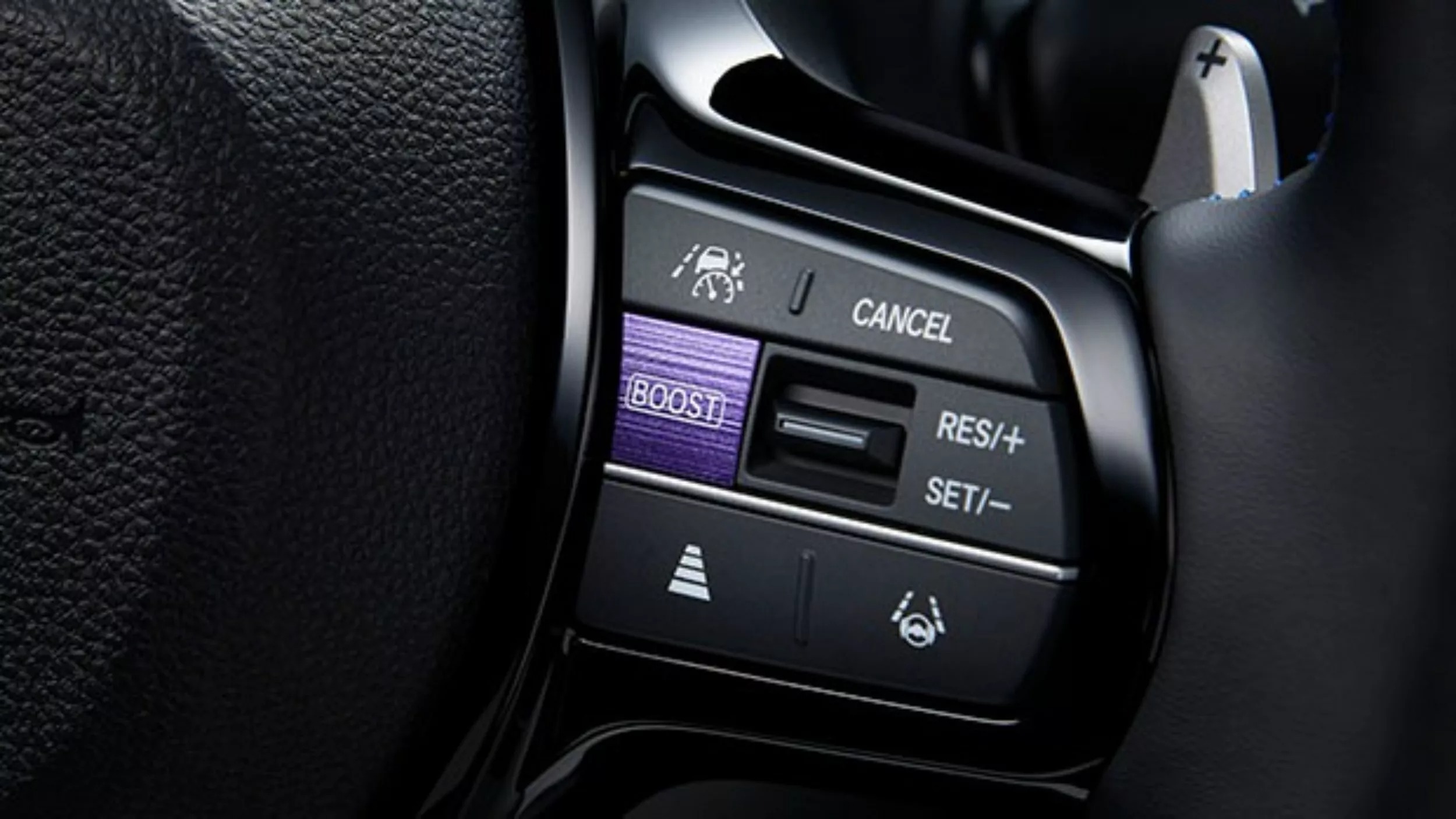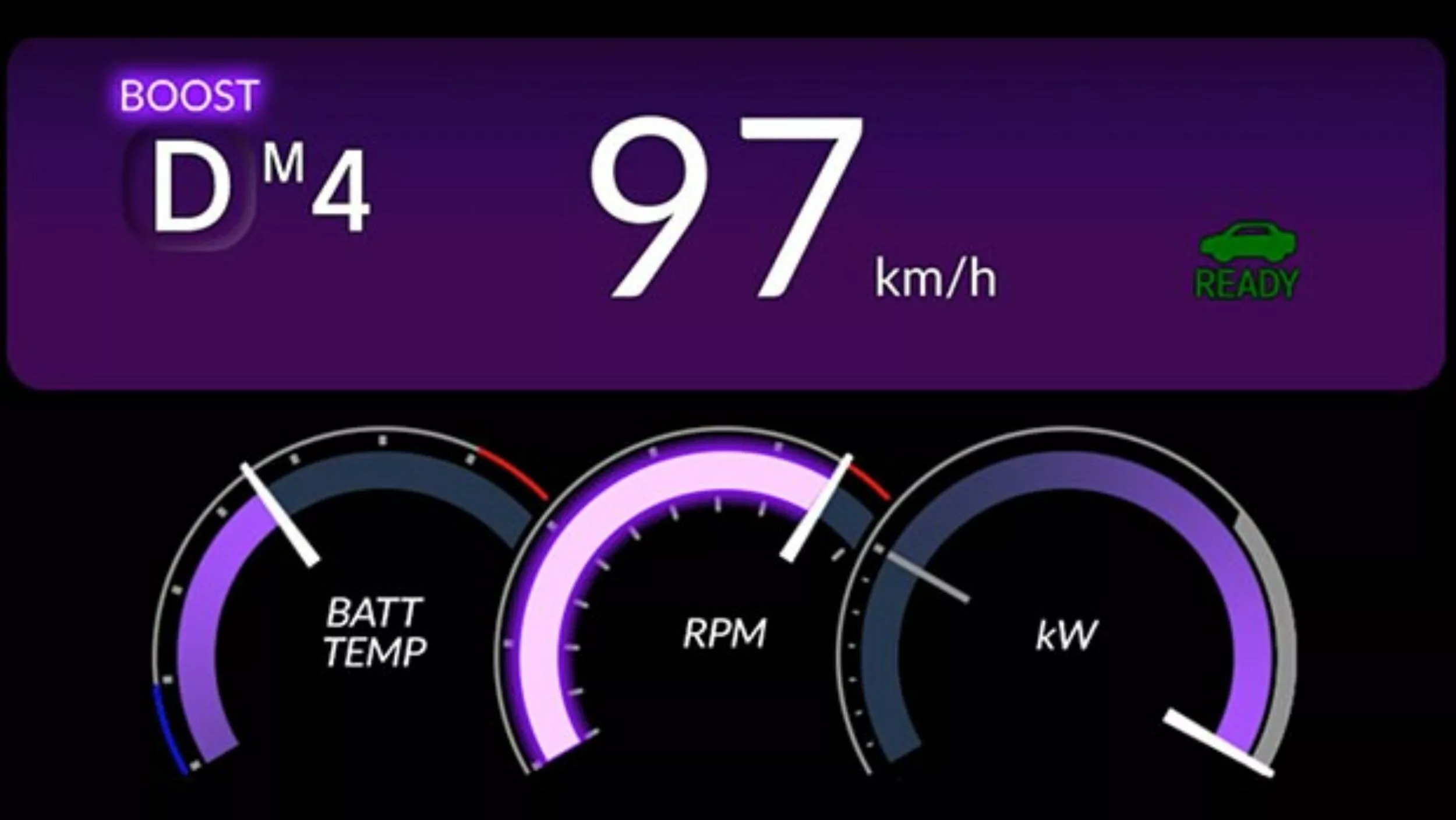 Inside, the dashboard architecture largely mirrors the N-One e:, but the Super-One introduces sportier details. The seats feature more pronounced bolstering with purple accents, while the 7-inch digital instrument cluster gains unique graphics. Activate Boost Mode, and the display transforms to show a simulated tachometer.