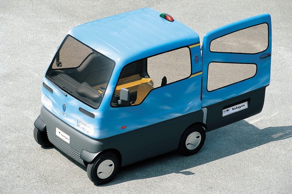 Measuring roughly two meters in length and about one and a half meters in width, the Biga was powered by a hybrid system combining a 250 cc direct-injection diesel engine with an alternator that generated electricity for the batteries, which in turn provided traction and transmission. This setup allows the vehicle to reach speeds of 60 km/h, which is quite sufficient for modern city driving.