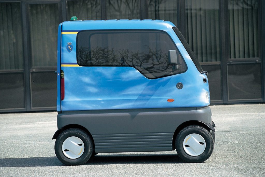 Purpose-built for this role, the Biga embraced radical minimalism. Anything non-essential was eliminated. Its body was formed from special steel chosen for strength and lightness, while the cubic passenger cell could accommodate a driver and three passengers or, alternatively, a driver and a wheelchair user, thanks to a side-mounted bench layout.