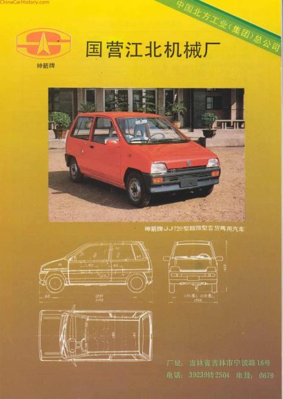 During 1986, the factory undertook two simultaneous projects: the Jiangbei JJ710, a replica of the Polski-Fiat 126P, and the JJ720, a reproduction of the Subaru Rex/Jumbo.