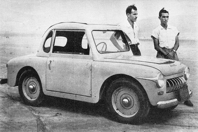 By that time, he built a compact 2-seat car. Built entirely in Brazil in 1954, the car relied almost exclusively on local craftsmanship; according to its creator, only the headlights, bearings, clutch disc, brake linings, and speedometer were imported.