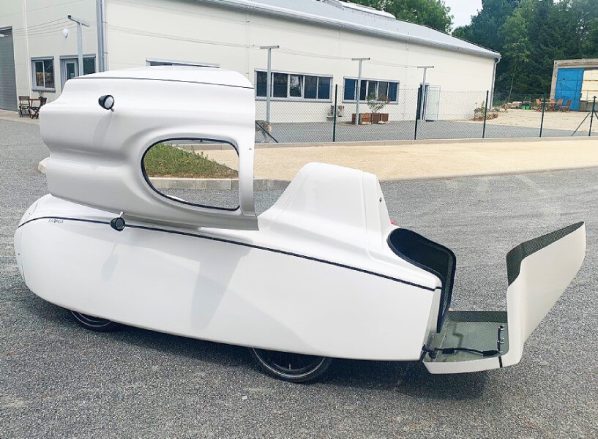 First of all, what is a velomobile? It is usually a recumbent tricycle – or sometimes a quad bike – that is completely covered by an aerodynamic shell. This streamlined body makes the vehicle faster than an upright bike (at least on the flat), and it provides a decent amount of cargo space along with protection from inclement weather.