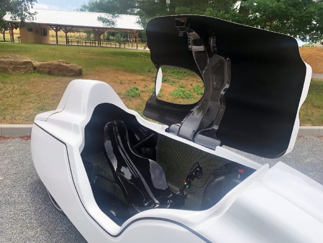 The velomobile’s electric motor is powered by a 48V/1240Wh lithium-ion battery, which is said to last up to 255 km in eco-assist mode.
