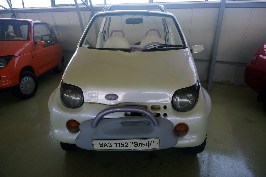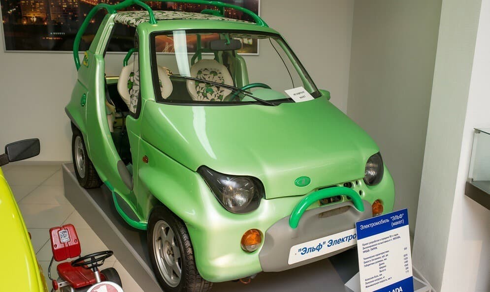 In 1996, one of the prototypes was converted into an electric vehicle. Designated as the VAZ-1152E Elf, it received an electric motor rated at 34 horsepower. A heavy nickel-cadmium battery weighing 315 kg allowed the car to travel up to 110 km at a constant speed of 40 km/h.