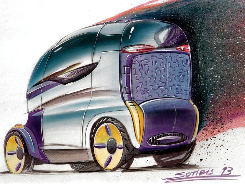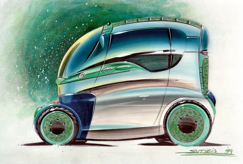 It explored how a radically compact, highly space‑efficient vehicle might function as a city taxi in a future where road space was severely limited.