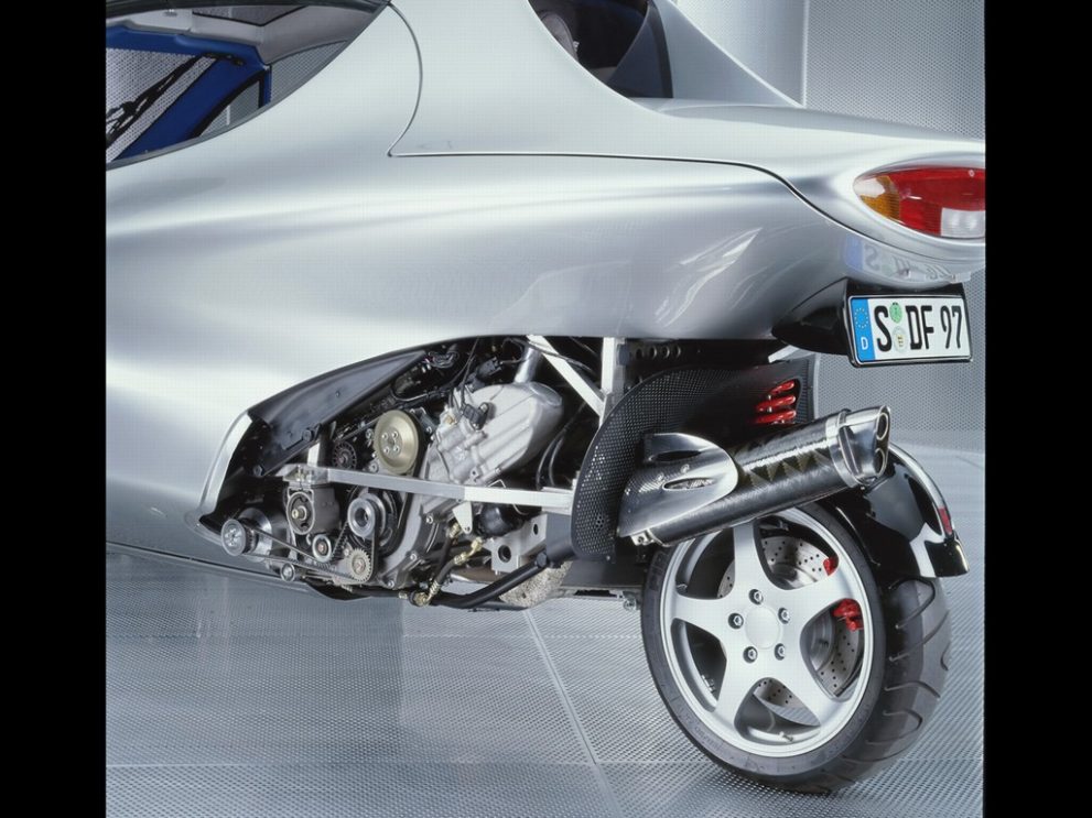 Carmakers have long shunned the idea of offering three-wheeled cars to their customers. Motorcycle manufacturers never promote anything that detracts from pure, two-wheeled excitement. But for flights of creative fantasy, three-wheeled machines mixing car and bike get plenty of attention, and this one from Mercedes-Benz packed a real technological punch with its Active Tilt Control (ATC) system.
