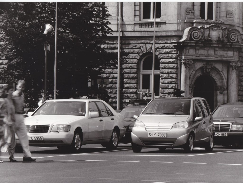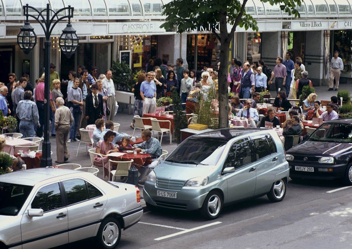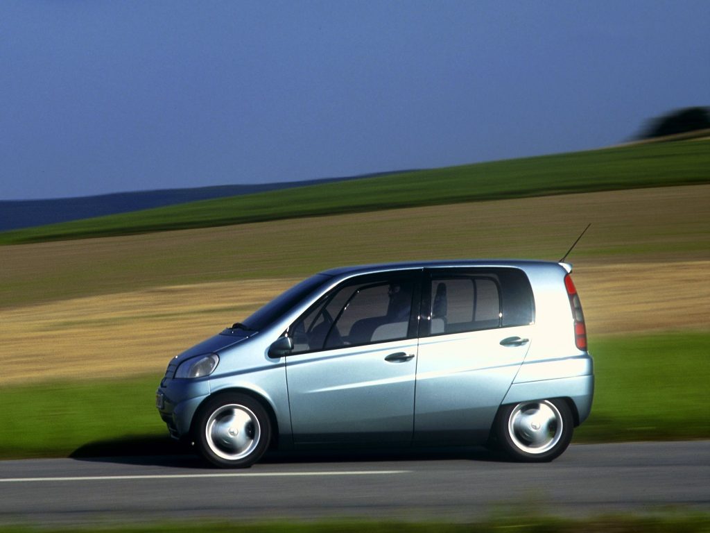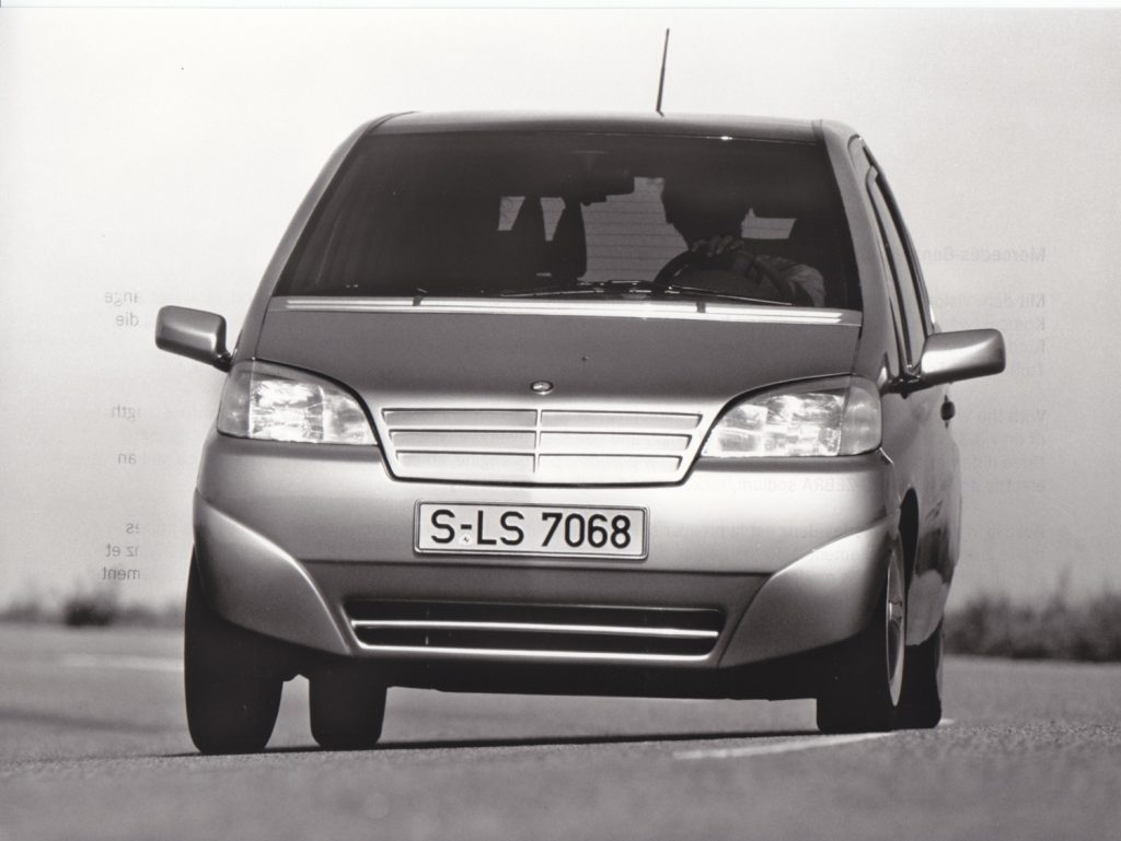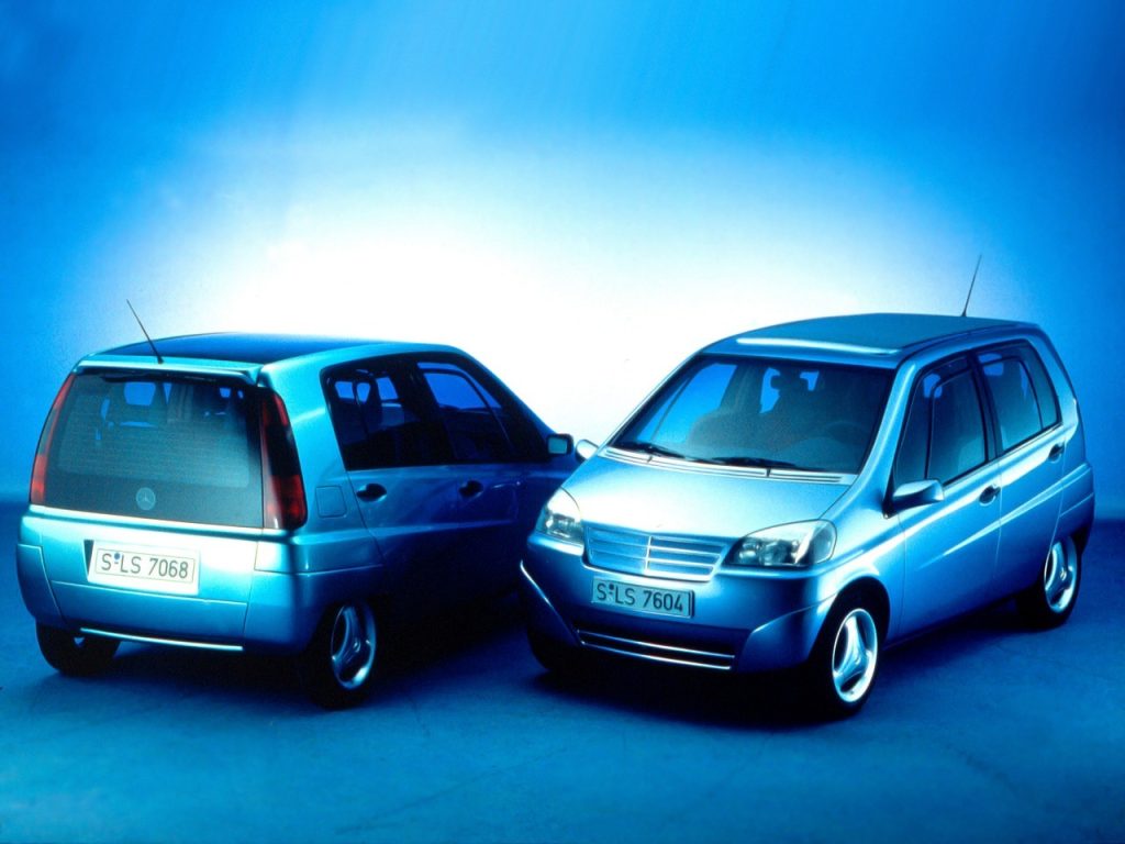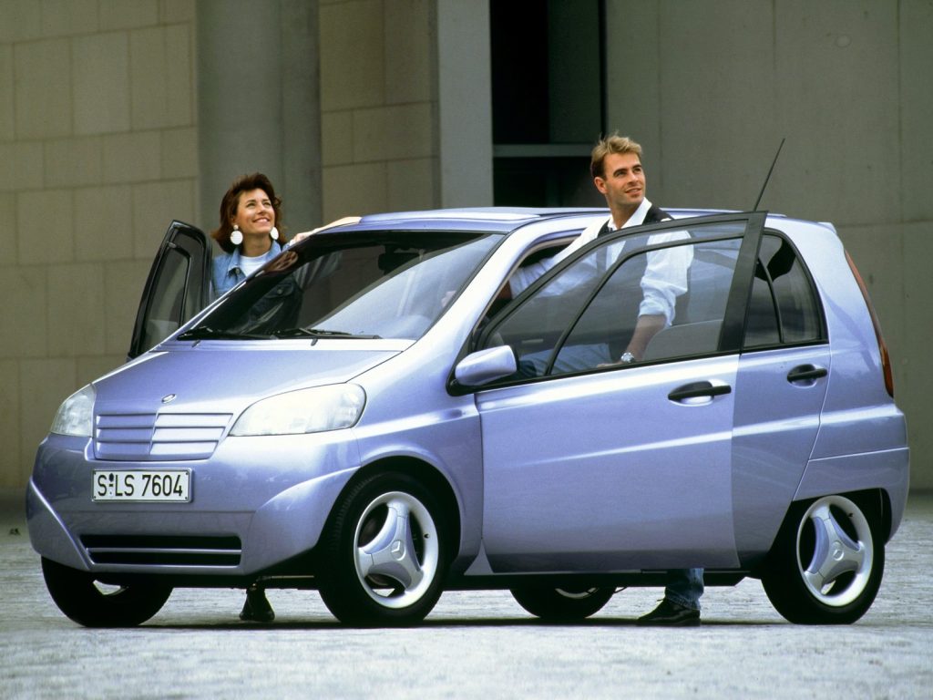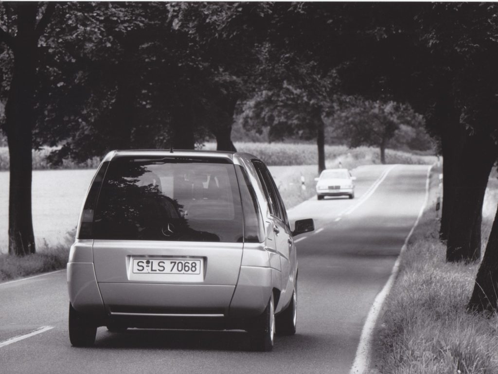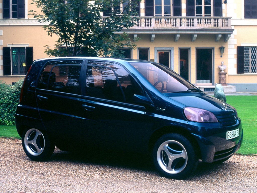 The project followed earlier research vehicles such as the NAFA city car (1982) and the F 100 (1991), extending Mercedes’ exploration of urban and short‑distance mobility. Its core mission was to combine subcompact exterior dimensions with a surprisingly spacious and versatile interior, without compromising on safety.