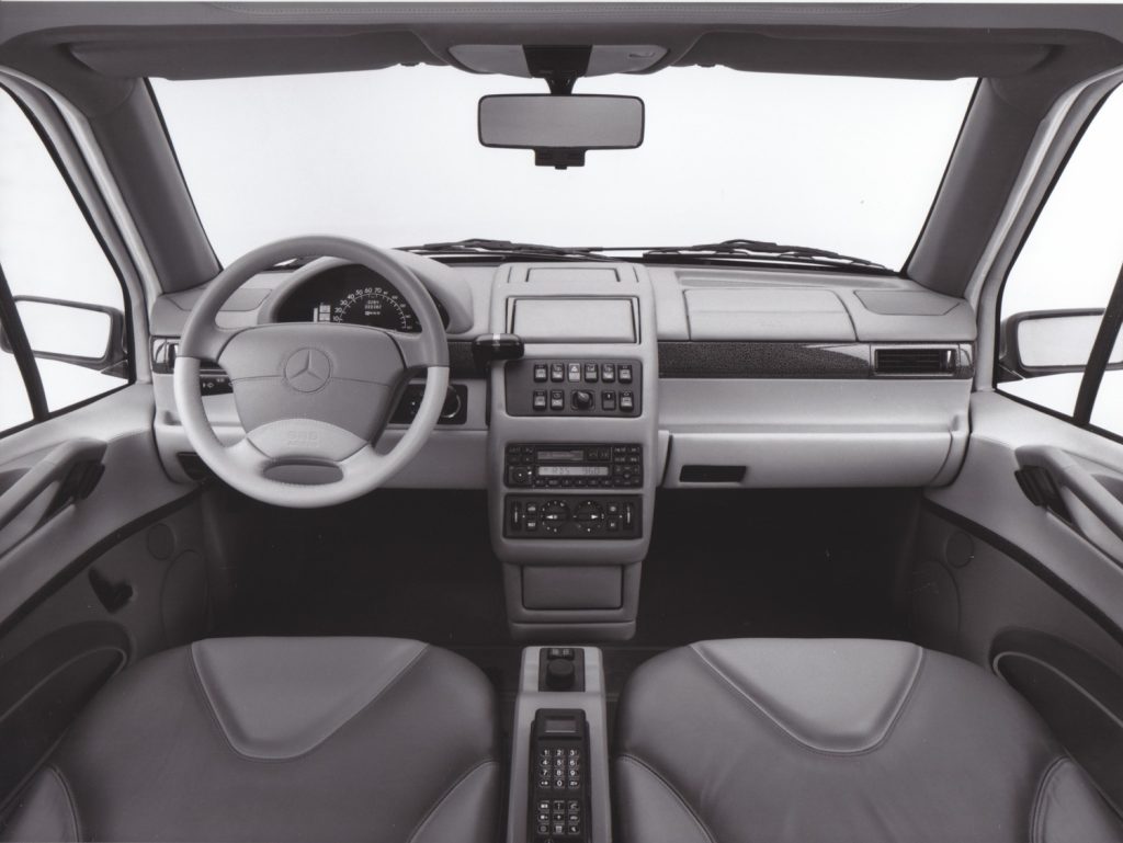 The body integrated large side‑impact structures in the doors, full‑size airbags for driver and front passenger, belt tensioners, and an integrated child seat in the rear, all unusual features for a small car of the early 1990s. This safety‑driven packaging showed that a compact urban car could still embody Mercedes’ reputation for occupant protection.
