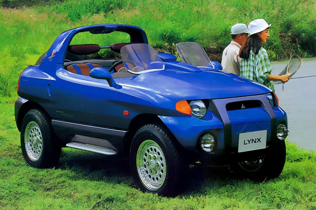 The experimental all-terrain vehicle known as Mitsubishi Link was conceived as a lightweight recreational machine built for outdoor adventures. Its creators described it as a vehicle for leisure, entertainment, and trips into nature.