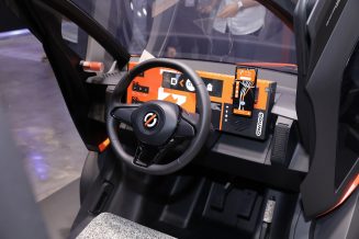 Mobilize Duo has guillotine-type doors like supercars, this kinematics will make boarding and loading in tight spaces easier. The 1+2 seating arrangement with the driver in the center is also borrowed from the supercars and allows not to make different versions for left- and right-hand traffic countries. Rear seats are designed for up to 180 cm tall passengers.