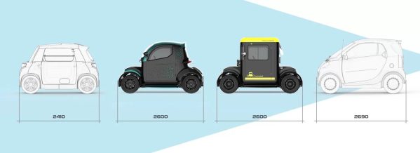 The basic versions have front-wheel drive, but AWD versions with mechanical power take-off to the rear wheels are also available. The power of the electric motor ranges from 5 kW (6.8 hp) to 15 kW (20.4 hp), depending on the version chosen. The maximum speed is 80 km/h. Kerb weight is no more than 450 kg. The range on one charge is 150-200 km. The battery is located at the rear of the body and can be quickly replaced.