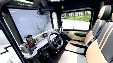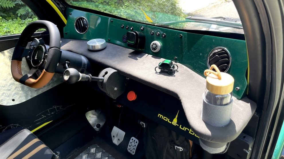 The interior design of the Mole Urbana depends on the type of body: in the case of the phone booth electric car, the front panel is in the form of a table with cup holders, and behind it is the plastic dashboard, the design of which also depends on the version of the model. Recycled materials and natural wood are used for decoration.
