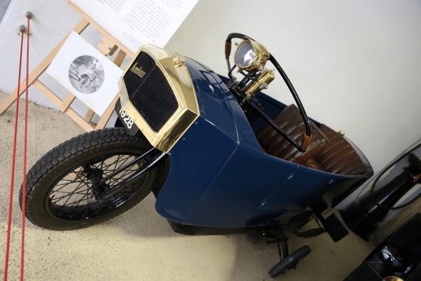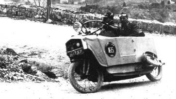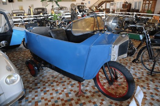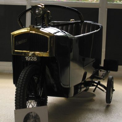 The most common French version of the Mauser Einspurauto was called Monotrace (this means “single track”). Structurally, it did not differ much from the German prototype, but it was equipped with a 510cc engine with 4CV (6 hp) tax power, a folding awning and a front headlight. It also had a three-speed gearbox, a chain-driven rear wheel and manual road wheel control. The weight of the car increased to 320 kg.