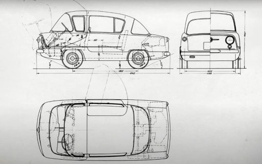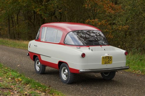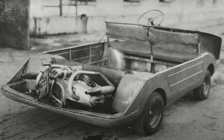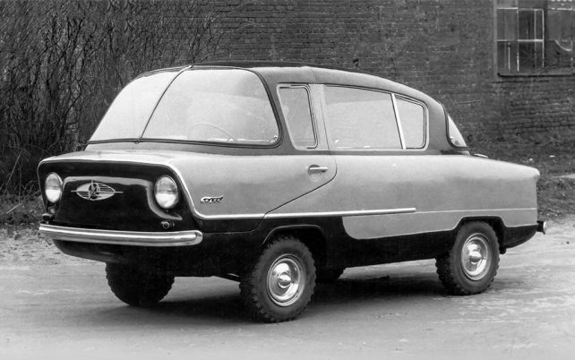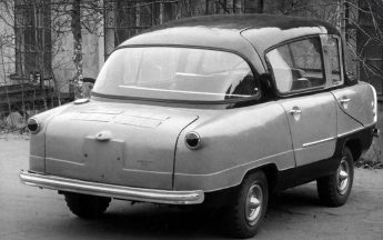 In 1955, the first prototype was ready, which was named ‘Belka’ (later the car received the designation IMZ-NAMI-A50). It was a small rear-wheel drive car, with a short wheelbase (1570 mm), and an extremely unusual design. The car received an original wagon-type body with a sloping roof and a protruding rear part, where an IMZ-M-72 motorcycle engine with a power of 20 hp was located.