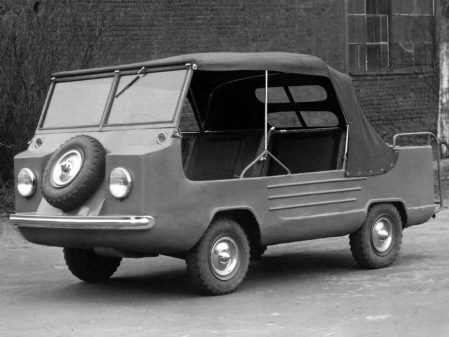 In 1956, the second prototype with a simplified open body was assembled. The version could be useful in the countryside, and possibly in army. The open-top prototype received a hinged windshield and an soft folded roof. The spare wheel was fitted on the front end, and comfortable handrails were placed on the hood and in the middle of the body.