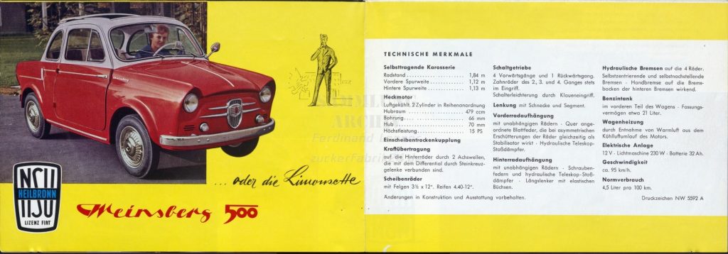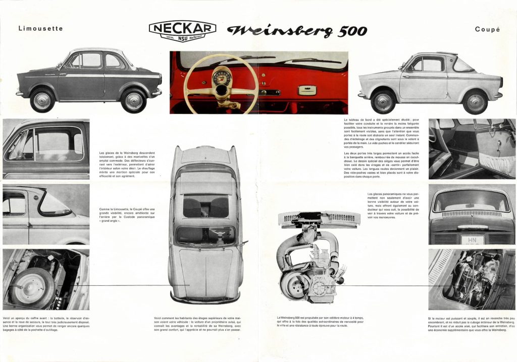 Neckar’s Weinsberg 500 factory history is a bit tangled. The plant had belonged to NSU before being sold to Fiat, with NSU granting Fiat the rights to use its name for small 500-based cars assembled there.