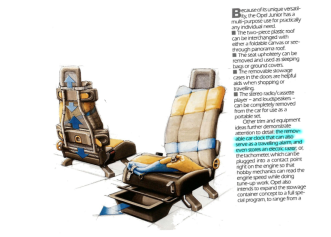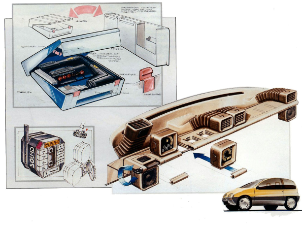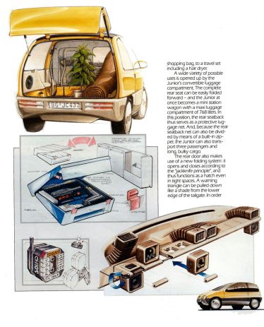 Opel even planned to make the radio and speakers detachable, so they could be assembled into a small boombox. A similar idea six years later was implemented by Nissan in its Pao concept.