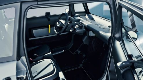 While the Ami received a full restyling last year, the Opel Rocks only gets new color schemes. The black and gray panels have swapped colors, and the bright yellow accents are mostly gone. The interior remains basic, with a heater, fan, wireless speaker, and a transparent roof. It also has lost its colors.