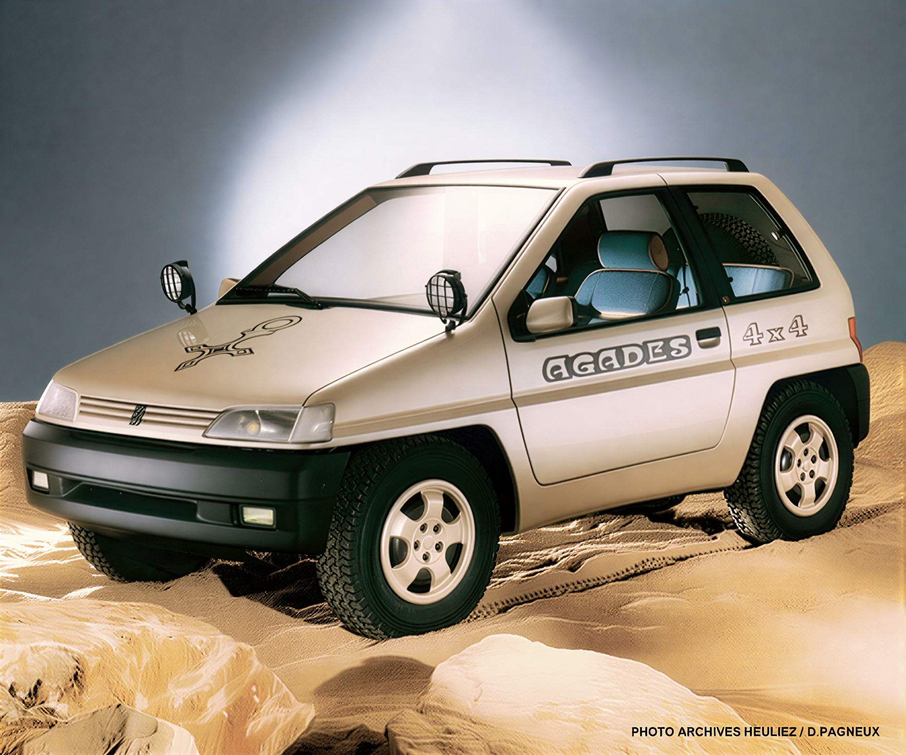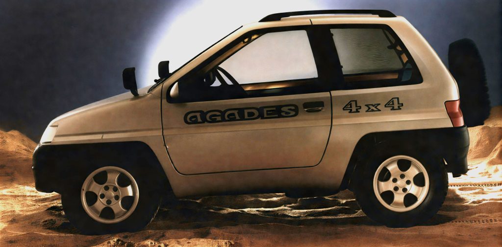 Unveiled in 1989 at the Paris Salon, the bright blue Agades was conceived as a compact four-wheel-drive passenger car for urban environments.