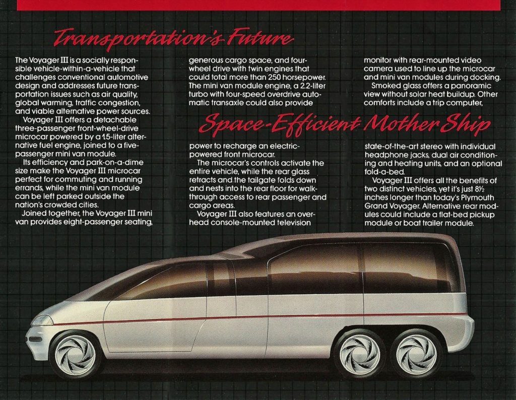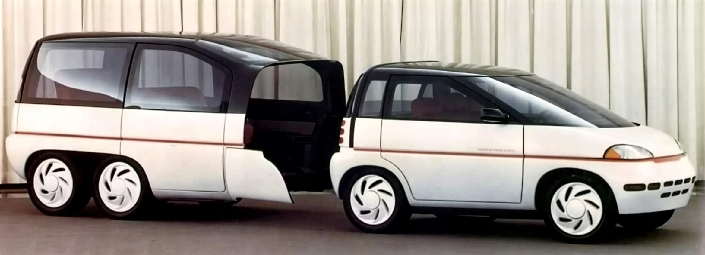 At its core, the concept was essentially two vehicles in one. Slightly longer than a contemporary Plymouth Grand Voyager, it offered added versatility through a modular, tractor-trailer-like layout.