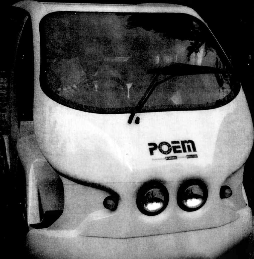 The Eleksuria became the first vehicle produced by POEM, entering the market on December 1, 1997. It was not an original design, but a locally licensed adaptation of the Solar Baby, an electric buggy-style vehicle created by the British engineering firm Frazer-Nash Research (FNR).