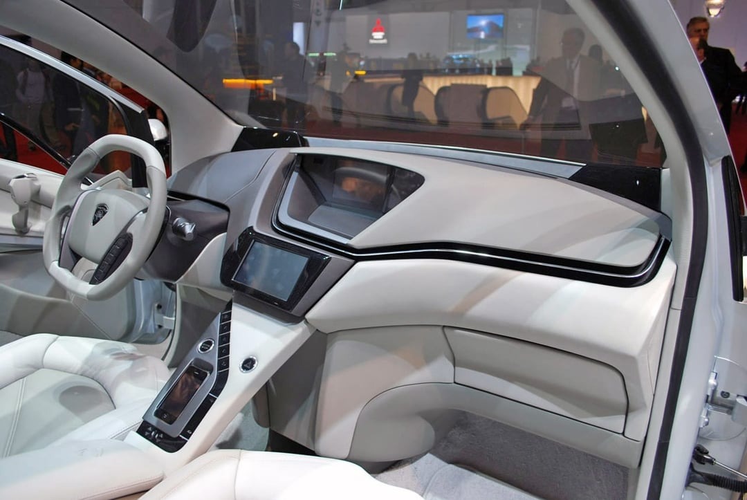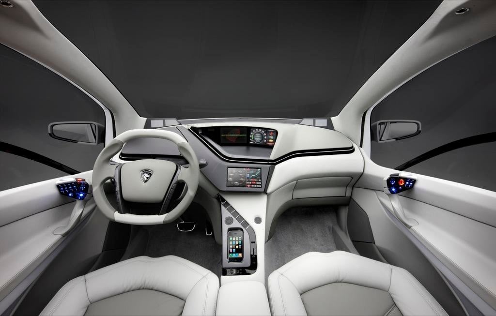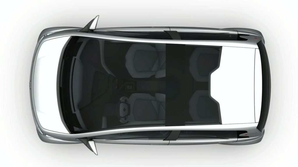 Two TFT screens formed the core of the instrument panel, handling both driver information and vehicle systems, while additional multimedia functions were integrated into the center console. Extensive glazing, including a large windscreen canopy, enhanced the feeling of openness and light within the cabin.