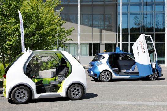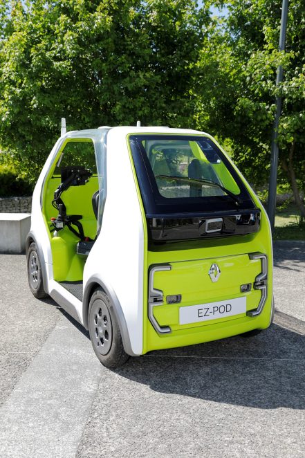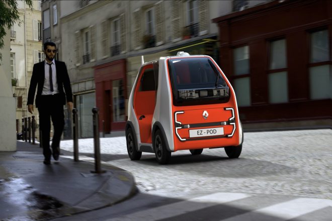 Renault presented the new EZ-Pod robotic autonomous electric platform which is built on the Twizy chassis and is designed to transport people and goods over short distances. Renault calls this “micromobility to cover the first and last mile.” In the “follow me” mode, the EZ-Pod will roll alongside the user and carry his stuff.