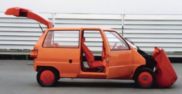 Invited to Renault by Robert Opron to work on the second-generation Renault 5 (Supercinq), Gandini also introduced his own proposal for a simple, low-cost urban vehicle.