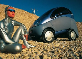 Renault, in collaboration with Matra, presented a concept called Zoom at the 1992 Mondial de l’Automobile in Paris. It met the above requirements to a tee. It was able to “shrink”. The bubble on wheels reminded some of a frog, and in its basic form it measured only 2650 mm, and was only 1520 mm wide.