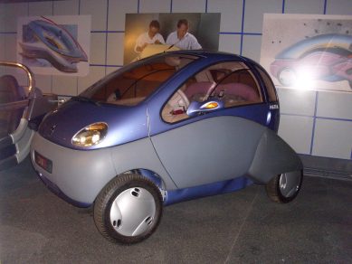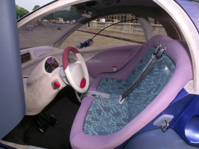 Renault, in collaboration with Matra, presented a concept called Zoom at the 1992 Mondial de l’Automobile in Paris. It met the above requirements to a tee. It was able to “shrink”. The bubble on wheels reminded some of a frog, and in its basic form it measured only 2650 mm, and was only 1520 mm wide.
