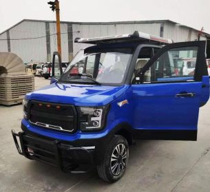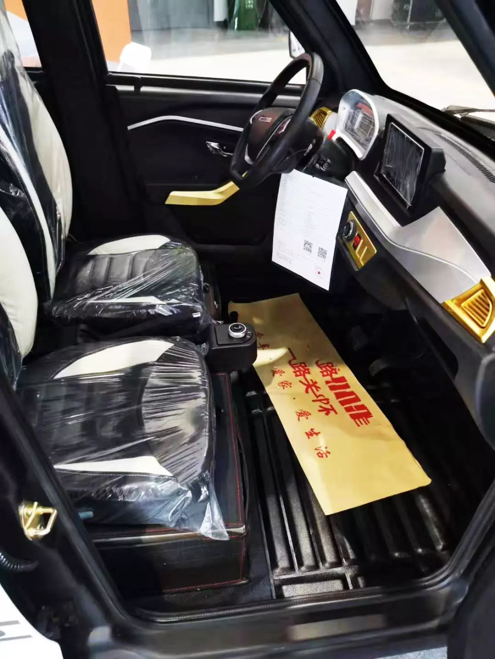 Its four-door body, which looks like a tiny crossover, can accommodate four. It is driven by an electric motor of 48 and 60 volts. It has independent suspension, rear brakes and a heater.