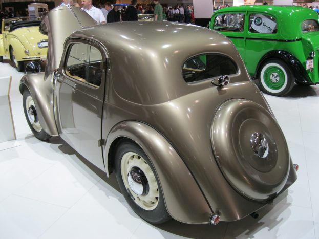 It could reach speeds of up to 70 km/h. The body, made of wood and steel, was similar to Škoda Popular. Mass production didn’t start, but 7 prototypes were made, including several convertibles and coupe, as well as one sedan. The version with sedan body appears to be the only surviving vehicle and now in the Skoda Museum.