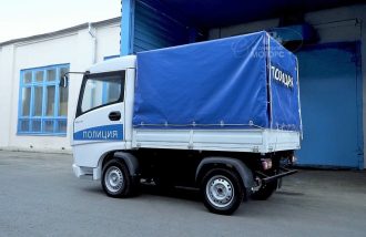 The length, width and height of the microtruck are 3470, 1500 and 2100 mm, respectively. Curb weight is 1000 kg, load capacity is 1000 kg. A 5 hp electric motor is powered by lead-acid batteries with liquid electrolyte. Maximum speed is 22 km/h. Milage varies from 70 to 90 km (depending on load).