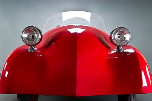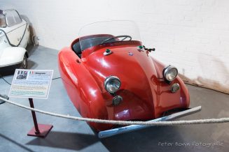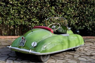 A small car equipped with a four-stroke single-cylinder air-cooled engine located in the rear. It has a volume of 125 cc and capacity of about 5 hp. Bimbo had no doors and no reverse — if necessary, it was supposed to push the car back by hand, since the two-meter car weighed only 120 kilograms.