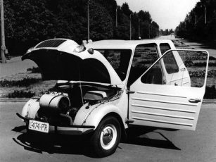 Driving backward was done by changing the direction of engine rotation. The drive shafts were equipped with constant velocity joints at the road wheels. The car had independent suspension on all corners. The front wheels were on transverse wishbones, while the rear wheels were on trailing wishbones. The spring elements of both axles were torsion bars. Double-acting telescopic shock absorbers were used. The road wheels had tires measuring 5.20-12″. Hydraulic drum brakes were used.