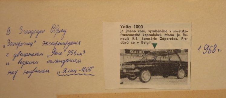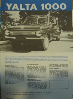 It was planned to launch Yalta 1000 at the facilities of the Belgian company S.A. Scaldia-Volga – a famous importer of Soviet cars in the country of Benelux. A 1968 article in The Engineer magazine reported that the importer had some kind of arrangement with Renault in Belgium to supply R8 engines. The production of the Yalta 1000 was planned at a new plant in Belgium.