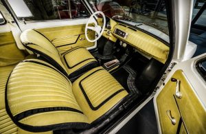 C’est tout à fait vrai ! Un point fort est également l’idée avec beaucoup d’accents pour rappeler la ville polonaise Bielska-Białej. Quelques détails sur l’intérieur : Le dossier du siège passager est pourvu d’une petite pochette avec le signe « Bielska-Białej pour Tom Hanks ». En revanche, le siège du conducteur porte une pochette portant l’inscription « 126p ». L’intérieur complet est recouvert d’un nouveau cuir coloré en jaune et noir.