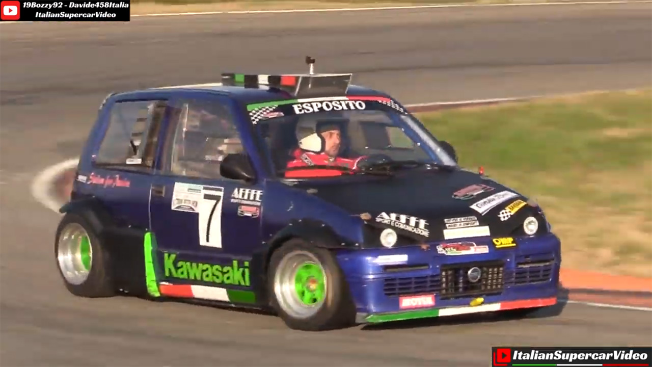 Fiat Cinquecento with Kawasaki Ninja motorcycle engine on a racing track