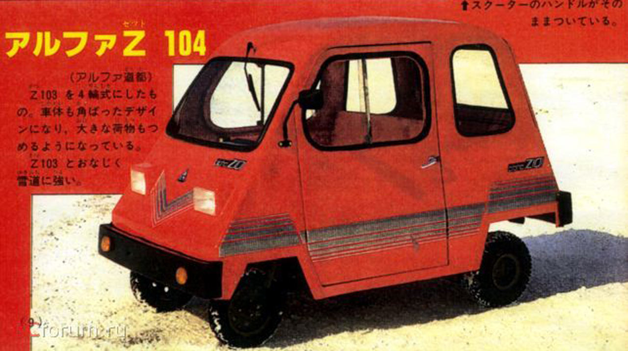 10.12.2017A Japan company アルファ (or Alpha) produced a pair of microcars: the 3-wheel Z103 and 4-wheel Z104....